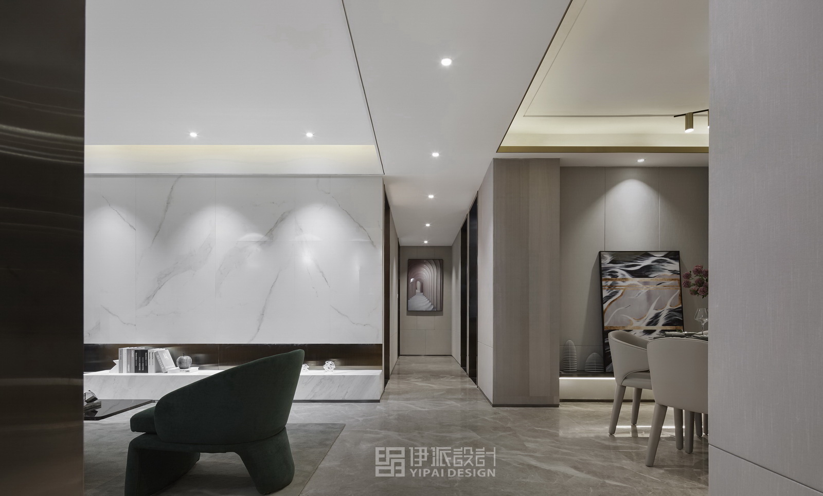 现代主义风格,通过舍去部分硬装面积将客厅和餐厅打造成连贯性空间。同时纳入当代物质享受来换取更多的自由,重塑当代轻奢家居环境。