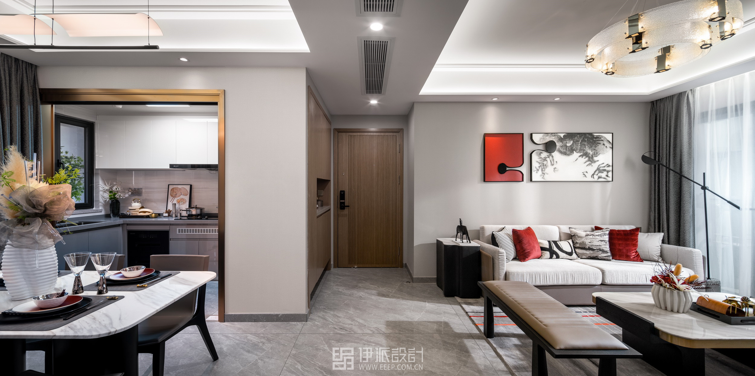 本案布局阴阳协调、色彩稳重成熟,以沉稳、内敛的传统文化为基点,将幽幽的意境之美与现代的利落简约想糅合,呈现出带有东方美学的精致空间。