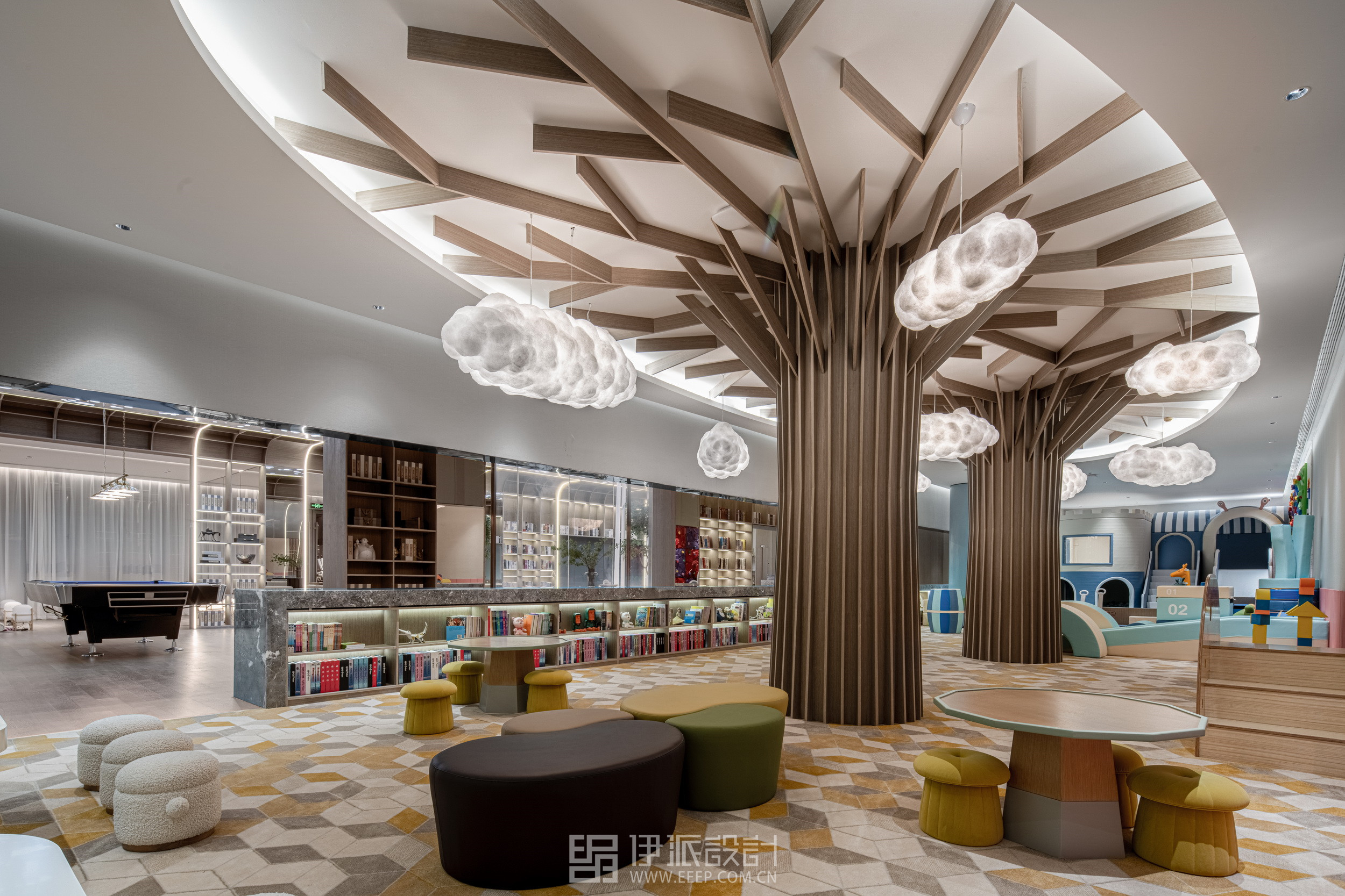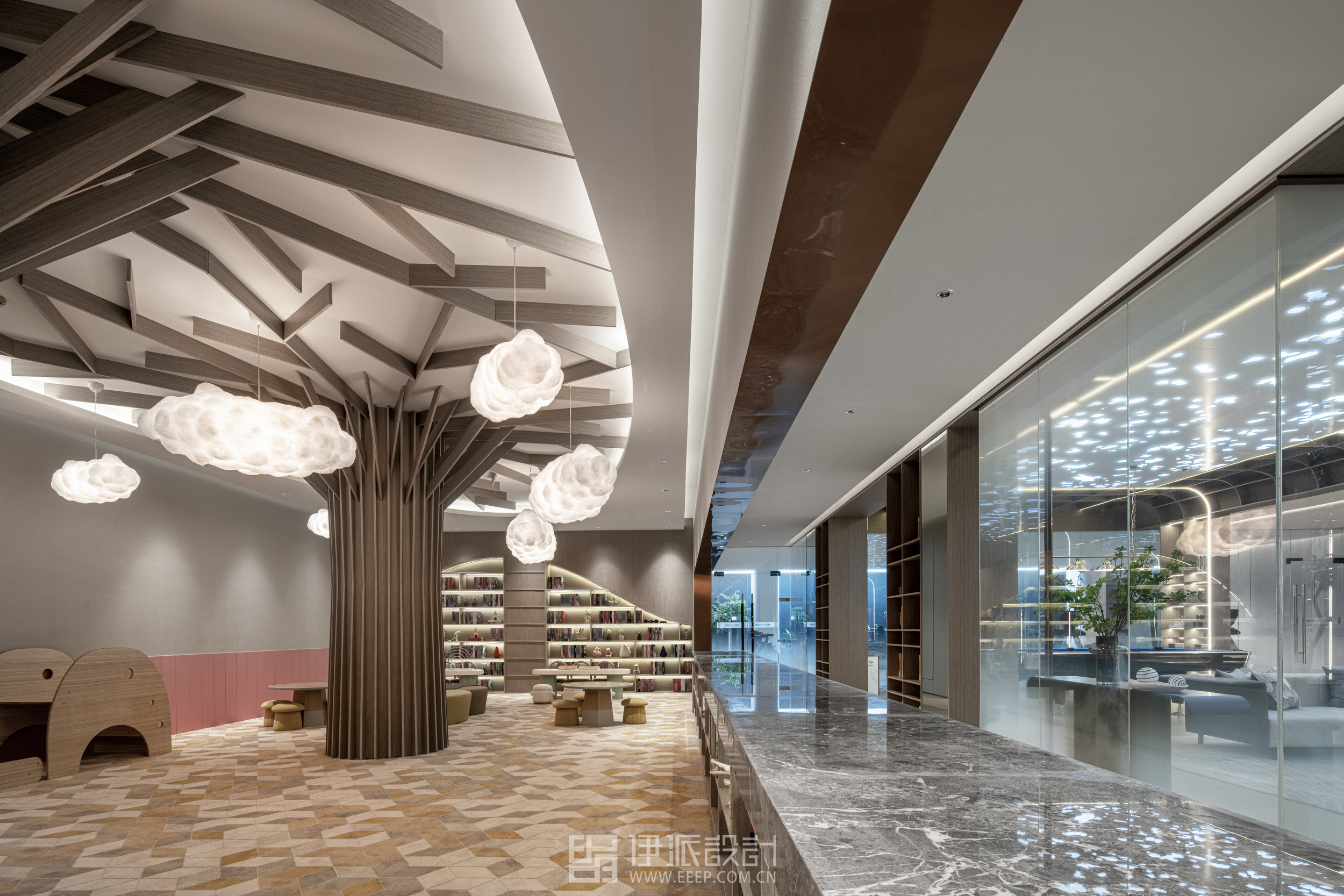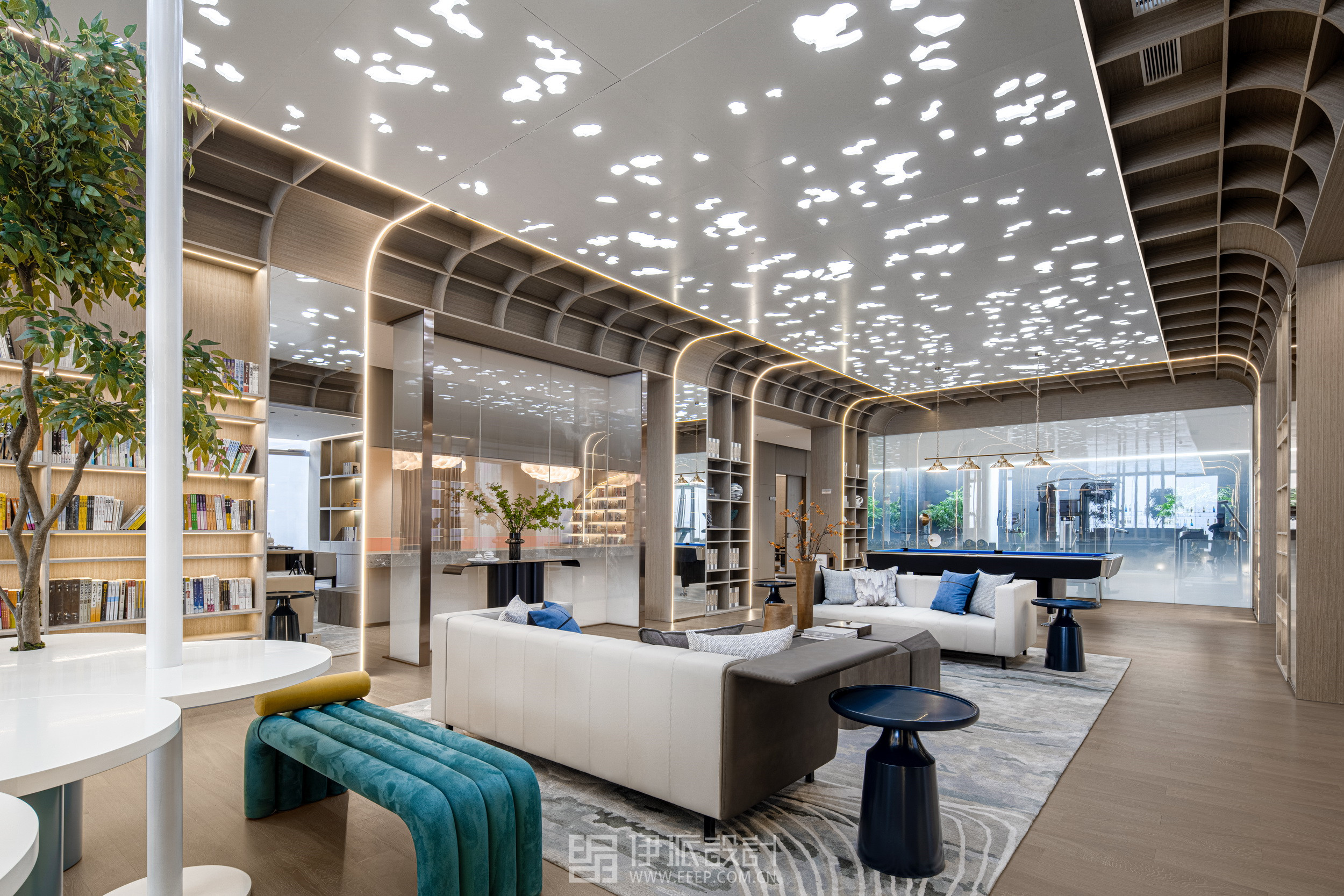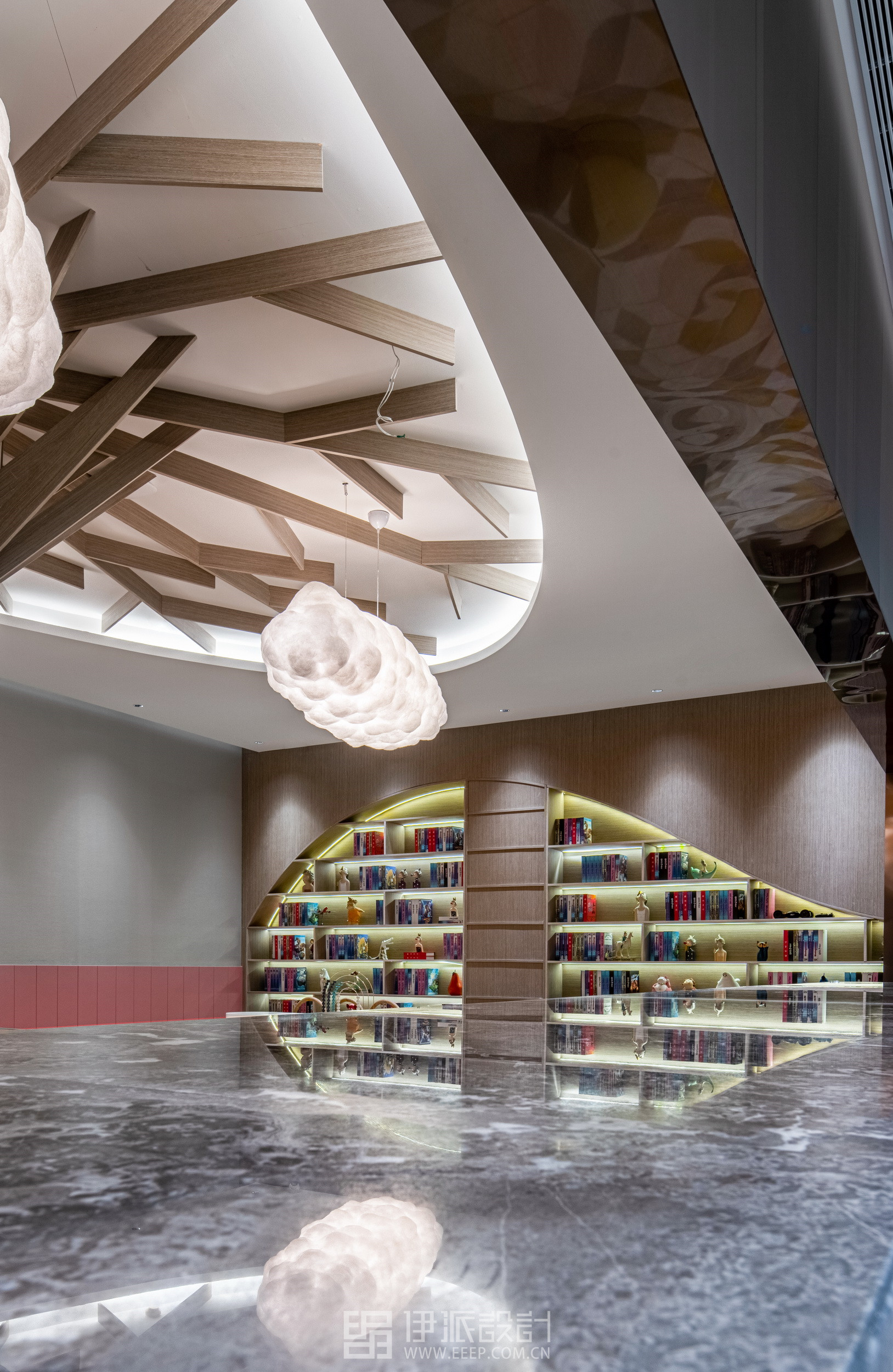 营造城市中的“桃花源”,描摹人与自然和谐、纯粹的共生之美。本案为宿州·万成·桃花苑营销中心的泛会所空间。营销中心共三层,一层为样板房以及办公空间,二层为售楼处主要空间,本案位于营销中心负一层,功能全面,动静相宜,可作为业主配套使用,打造楼盘独特性,增加营销卖点。