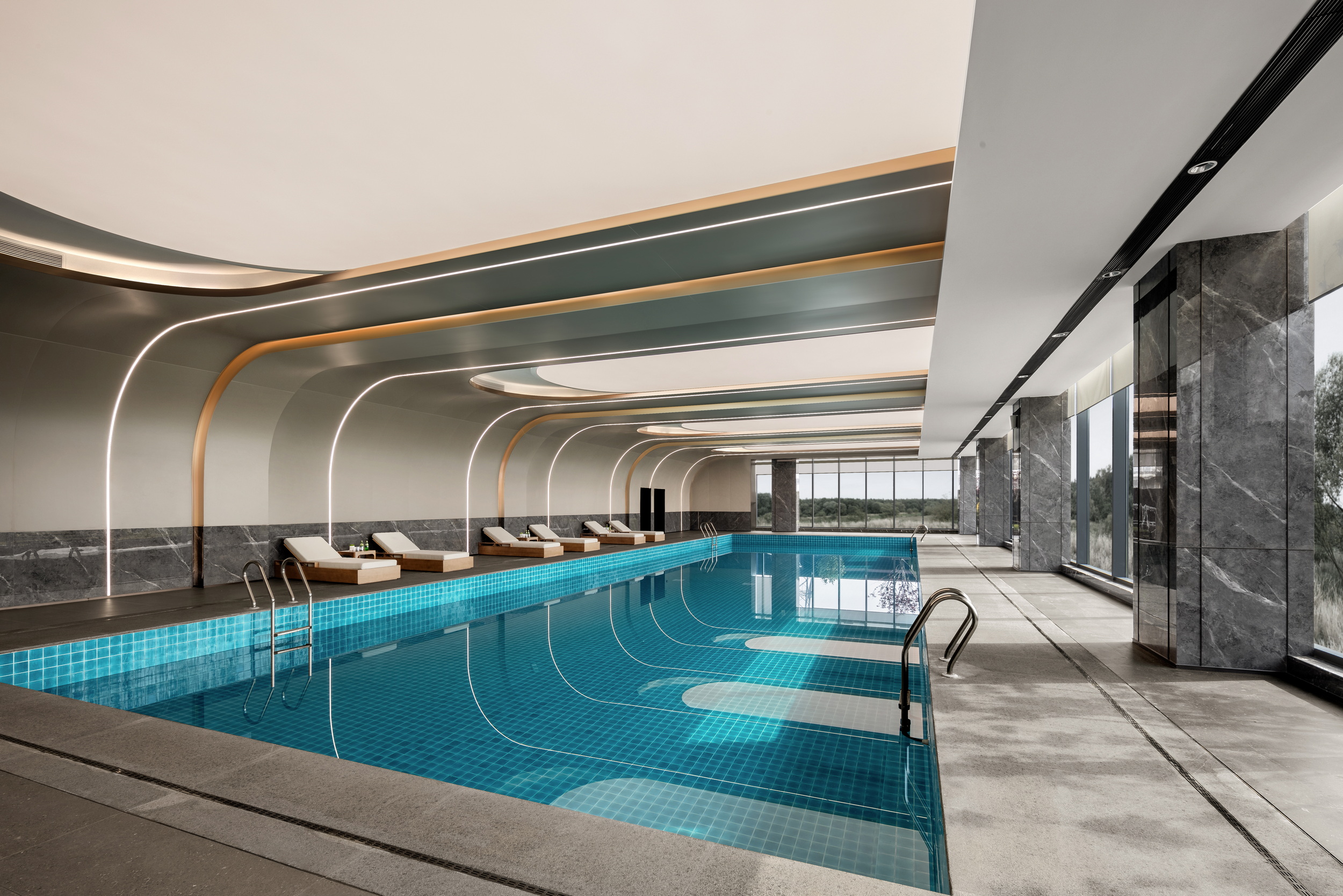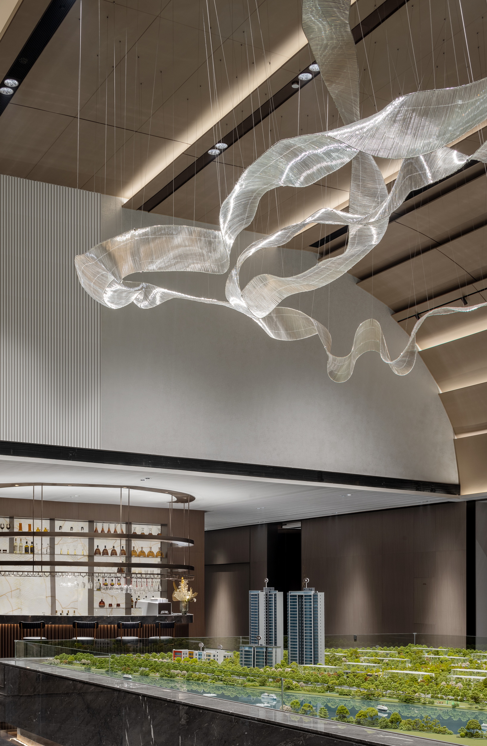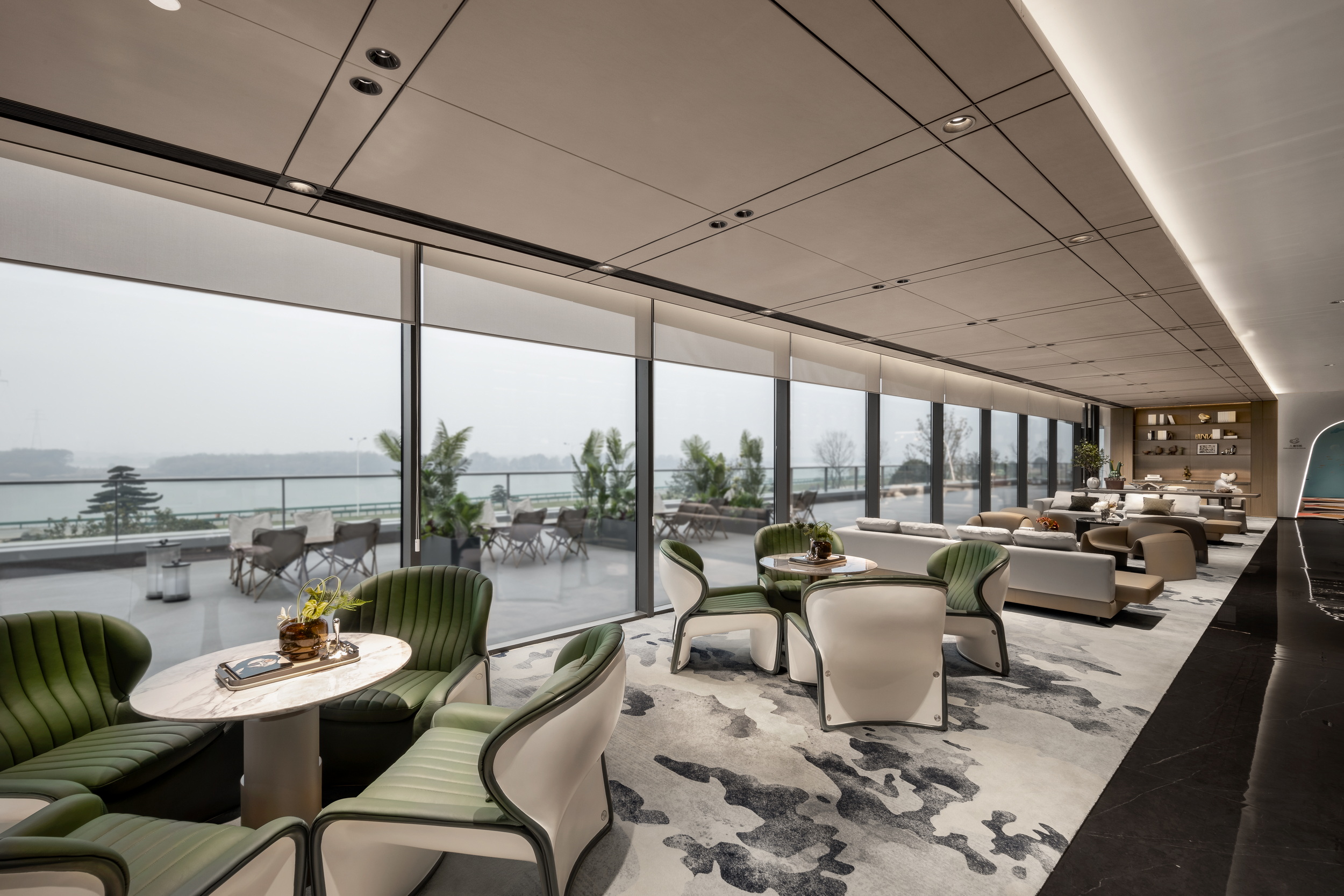伊派设计以 “艺术 + 生态” 为核心设计理念,打造约5000㎡江岸艺术会所。以 “起航,遇水见石” 为主线,通过启程、停泊、靠港贯穿三层空间,巧妙融合江景视野与东方美学,营造出独一无二的空间体验。会所内部设施一应俱全,配备恒温泳池、私家健身房、童梦空间以及书吧,尽显顶级豪宅配置,与润和滨江湾相媲美。