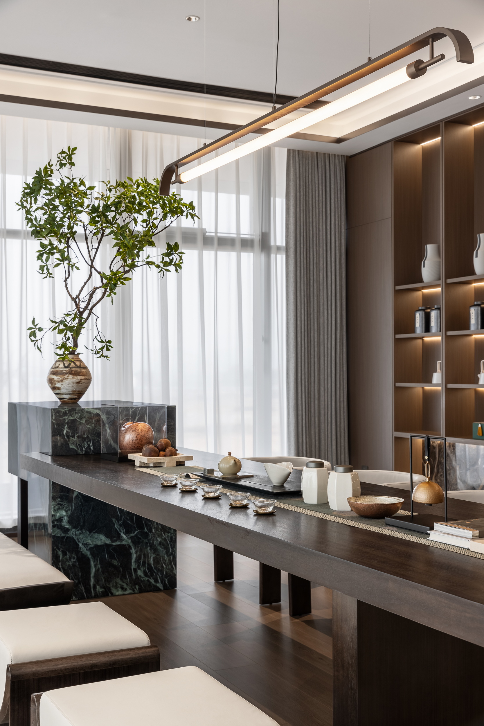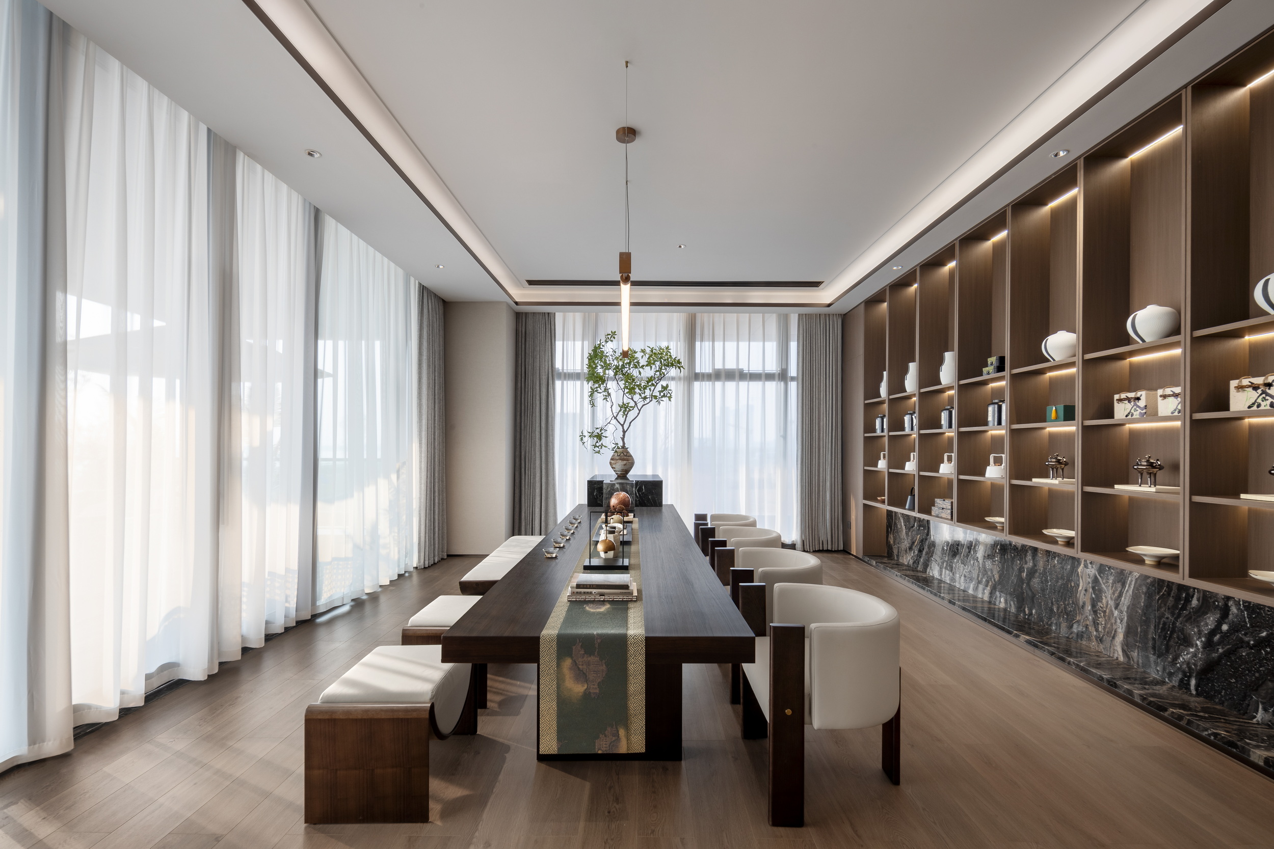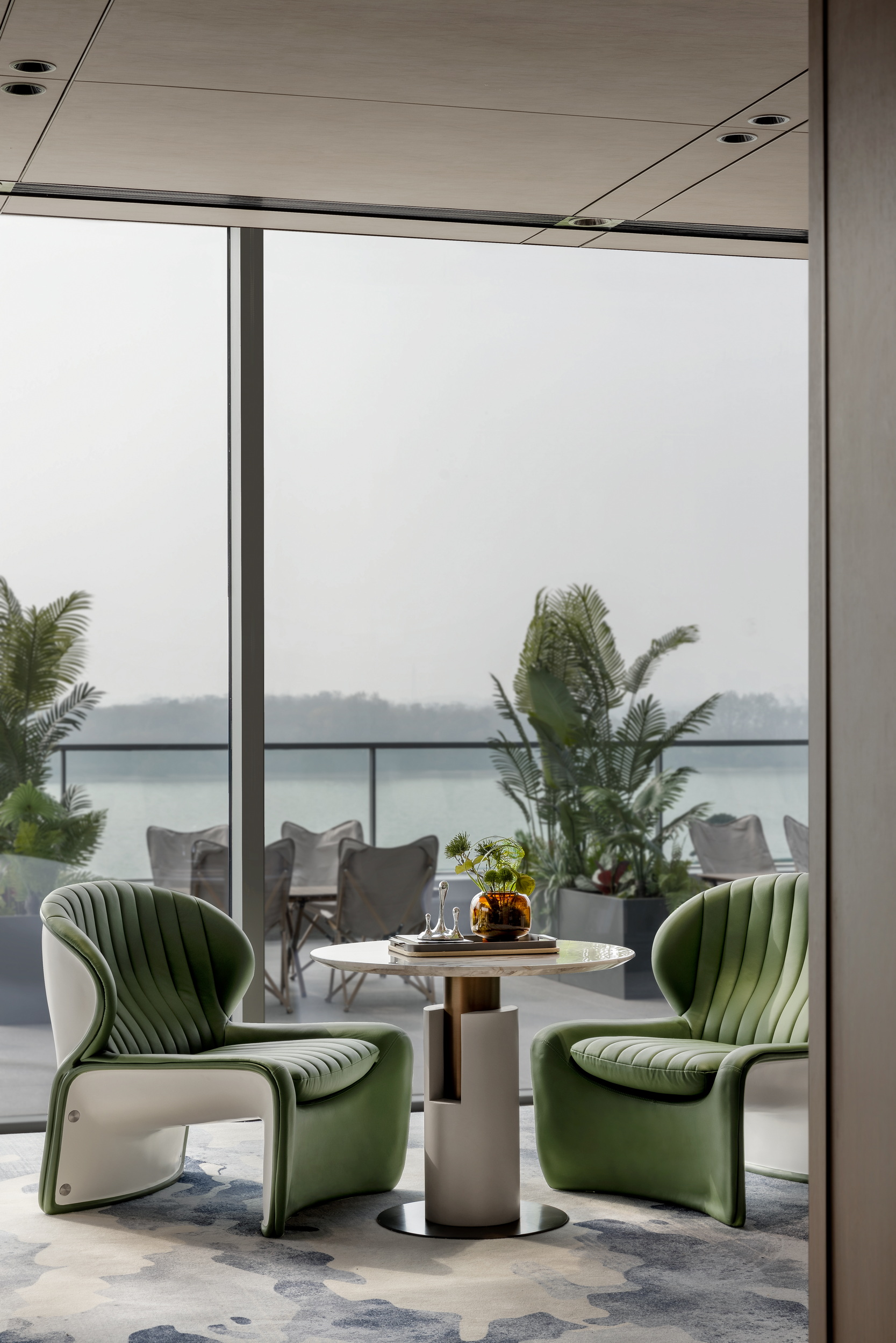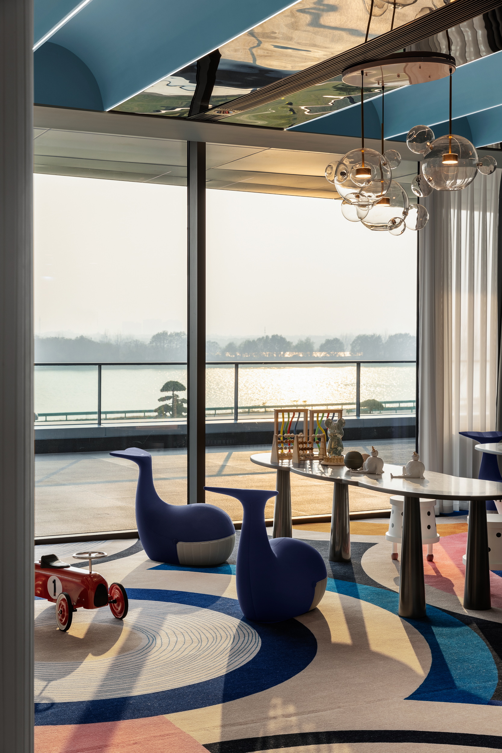 伊派设计以 “艺术 + 生态” 为核心设计理念,打造约5000㎡江岸艺术会所。以 “起航,遇水见石” 为主线,通过启程、停泊、靠港贯穿三层空间,巧妙融合江景视野与东方美学,营造出独一无二的空间体验。会所内部设施一应俱全,配备恒温泳池、私家健身房、童梦空间以及书吧,尽显顶级豪宅配置,与润和滨江湾相媲美。