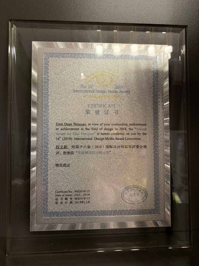 一次次的荣誉代表着业界对伊派设计和段文娟女士在室内设计行业所做贡献的肯定和表彰,也承载着社会各界对伊派设计机构的鼓励和期待。2019年,伊派设计将再接再厉,不断突破,以更多优秀的作品回馈社会!