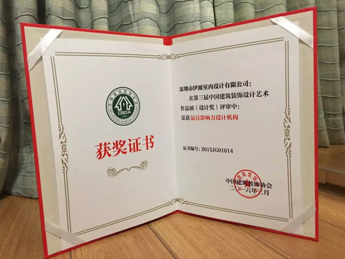 深圳市伊派室内设计有限公司荣获样板房空间设计-“最具影响力设计机构”