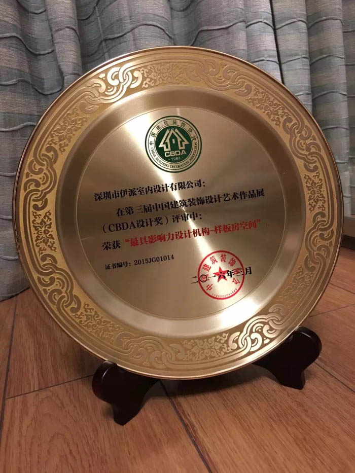 在上海举行的2016“设计面对面”东西方设计与交流会上,深圳伊派室内设计有限公司的优秀的样板房设计作品获得了评委与同行的高度认可,荣获“最具影响力设计机构”大奖